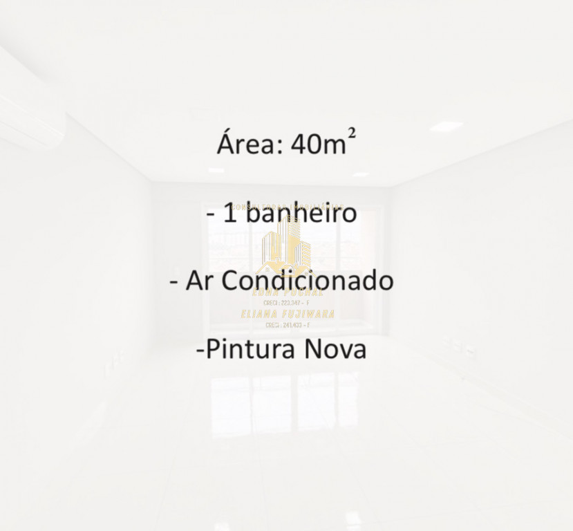 Excelente espaço de 40 m², com dois banheiros, ar-condicionado e pintura recentemente renovada, oferecendo conforto e praticidade. -