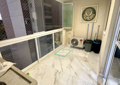 - sacada gourmet com churrasqueira a carvão e amplo espaço